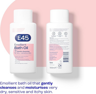 E45 Emollient Bath Oil 500ml | Moisturises Dry, Sensitive Skin & Gentle Cleansing